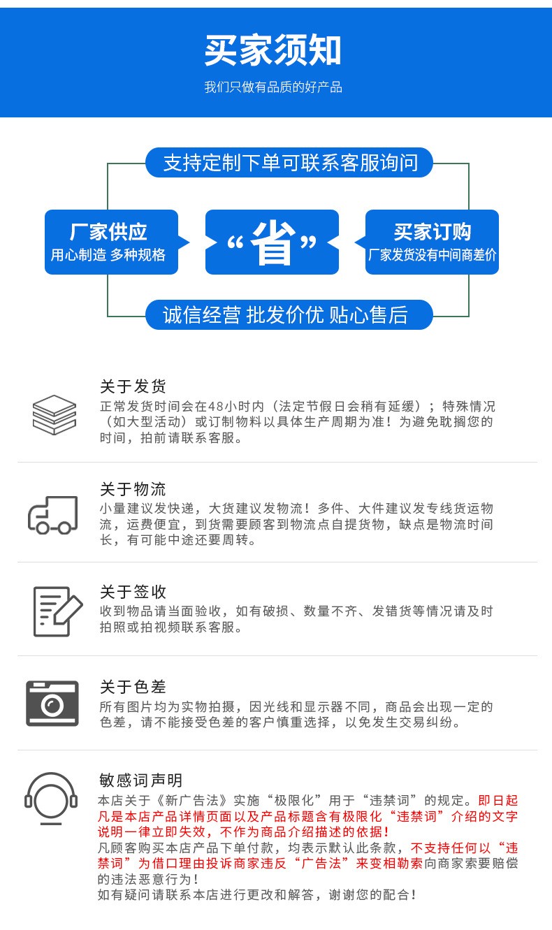 (4)產品屬性:下單之前或者購買之前請咨詢您需要的商品型號、規格尺寸等,以便確認你所